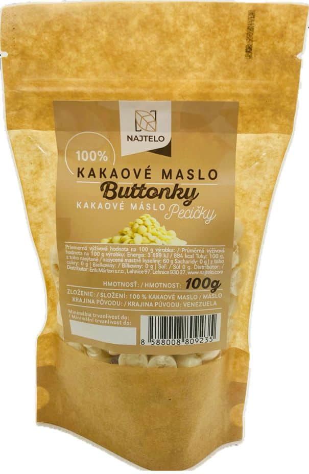 Domov / Špajza / Doplnky k pečeniu a vareniu / Najtelo kakaové maslo buttonky pecičky 100g