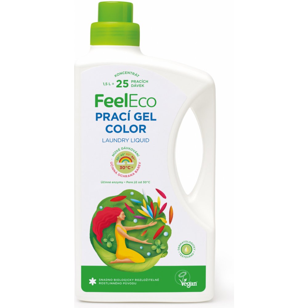 Skvele ochráni farbu vašej bielizne. Vysoko účinný, odporúčaná dávka 60 ml prostriedku na 1 pranie zároveň šetrí produkt a vďaka zloženiu tiež čističku odpadových vôd. Nedráždi a nevysušuje kožu.