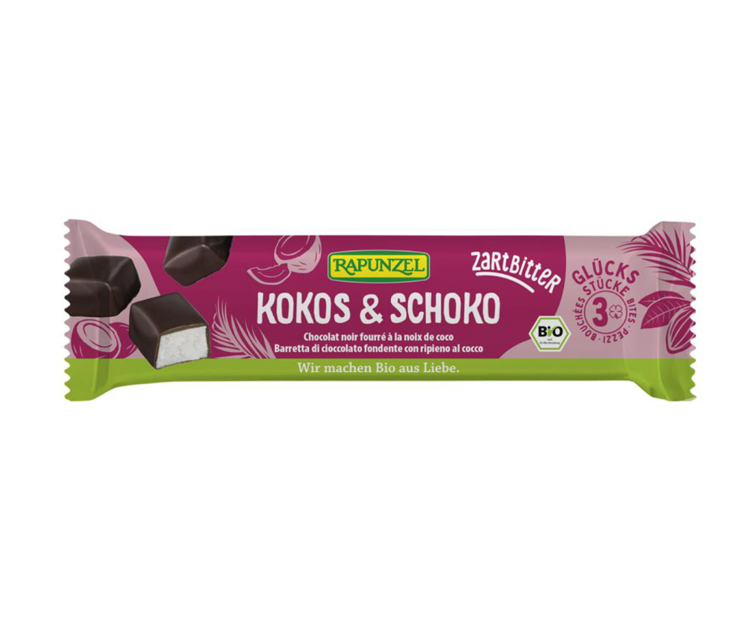 Kombinácia strúhaného kokosu a chrumkavej horkej čokolády