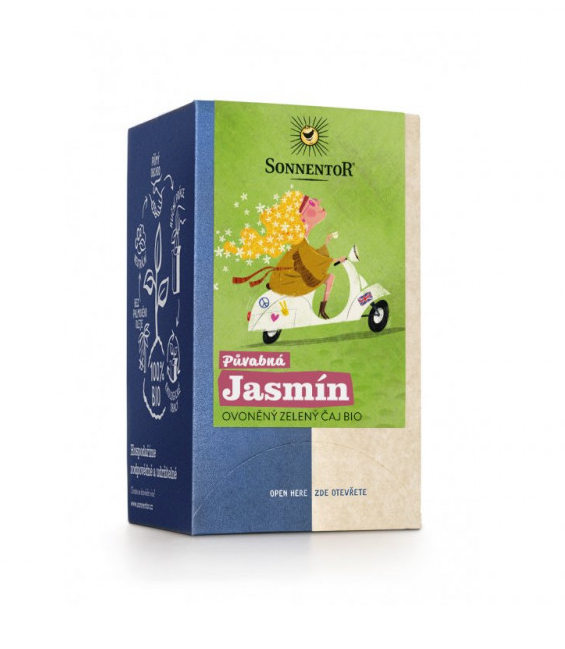 Zelený čaj jazmín* (100 %). Obsahuje kofeín. *produkt kontrolovaného ekologického poľnohospodárstva