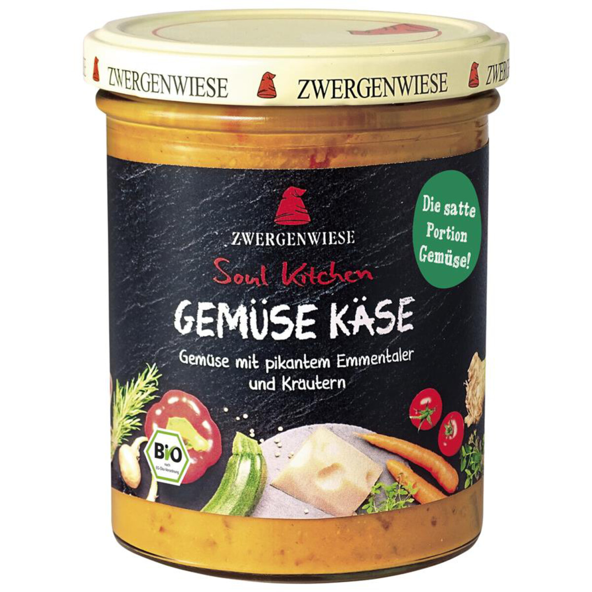 Vegetariánske organické hotové jedlo zo zeleniny a ementálu. Čisté, s ryžou alebo rezancami, s bagetami, ako zábalová náplň alebo ako základ pre nápadité vlastné pokrmy.